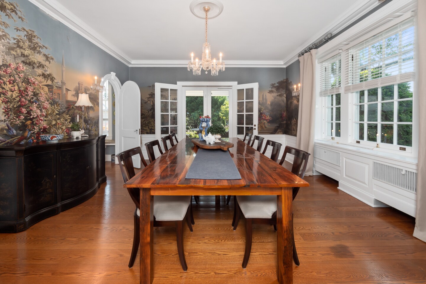 The 3-story Federal-Style Georgian Colonial mansion at 1880 W Union Boulevard sits on 1.27 acres and boasts a grand staircase, gourmet kitchen, meticulous landscaping and gardens and garaging for six vehicles (2-car attached and a 4-car detached garage).