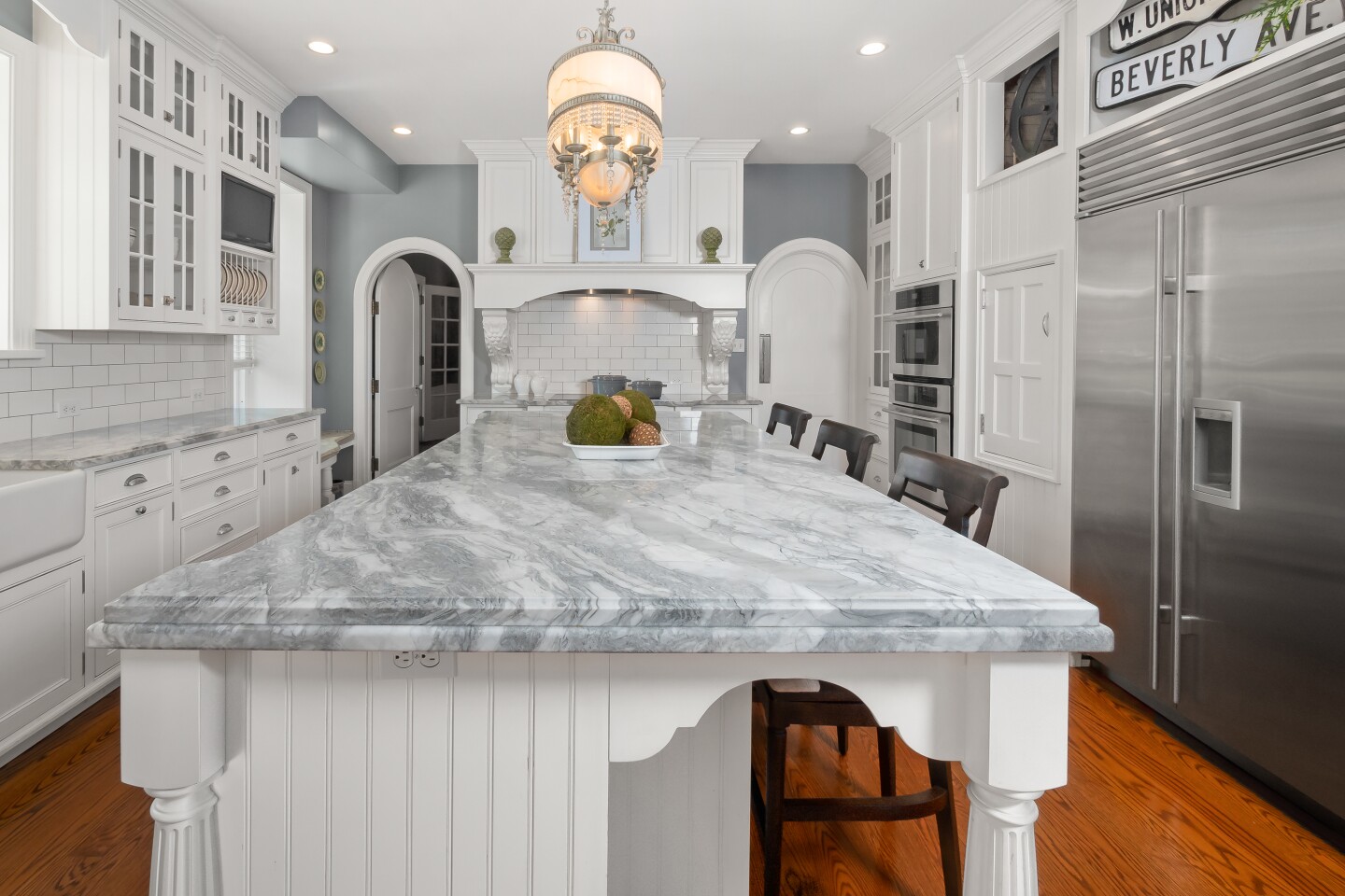 The 3-story Federal-Style Georgian Colonial mansion at 1880 W Union Boulevard sits on 1.27 acres and boasts a grand staircase, gourmet kitchen, meticulous landscaping and gardens and garaging for six vehicles (2-car attached and a 4-car detached garage). (Courtesy of The Rebecca Francis Team at BHHS Fox & Roach Realtors )
