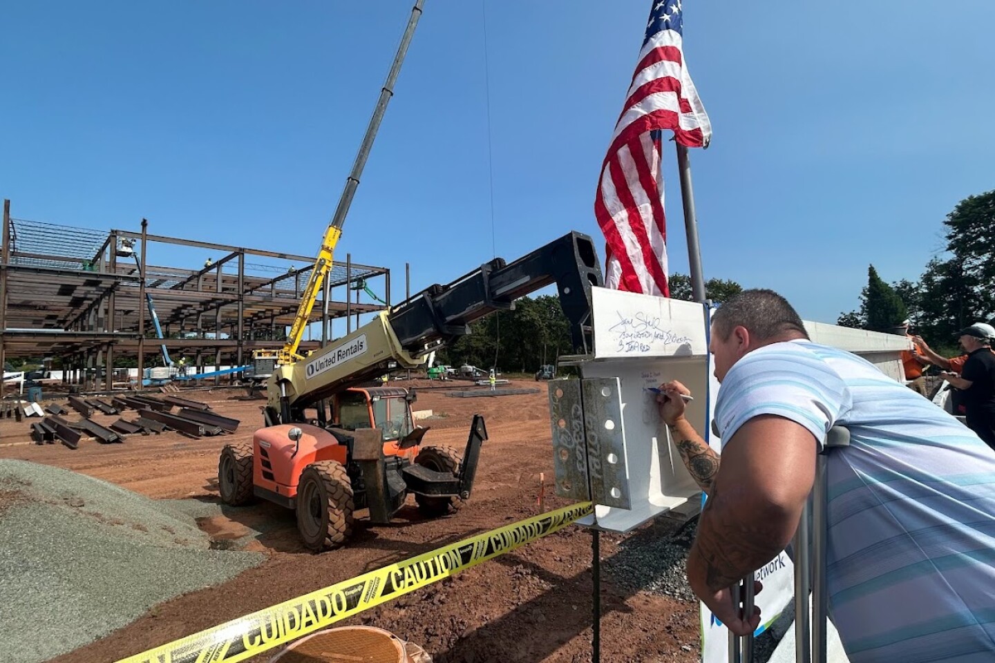 Lehigh Valley Health Network placed the last steel beam to complete the frame of their medical office building and new emergency room in Montgomery County. (Brittany Sweeney)