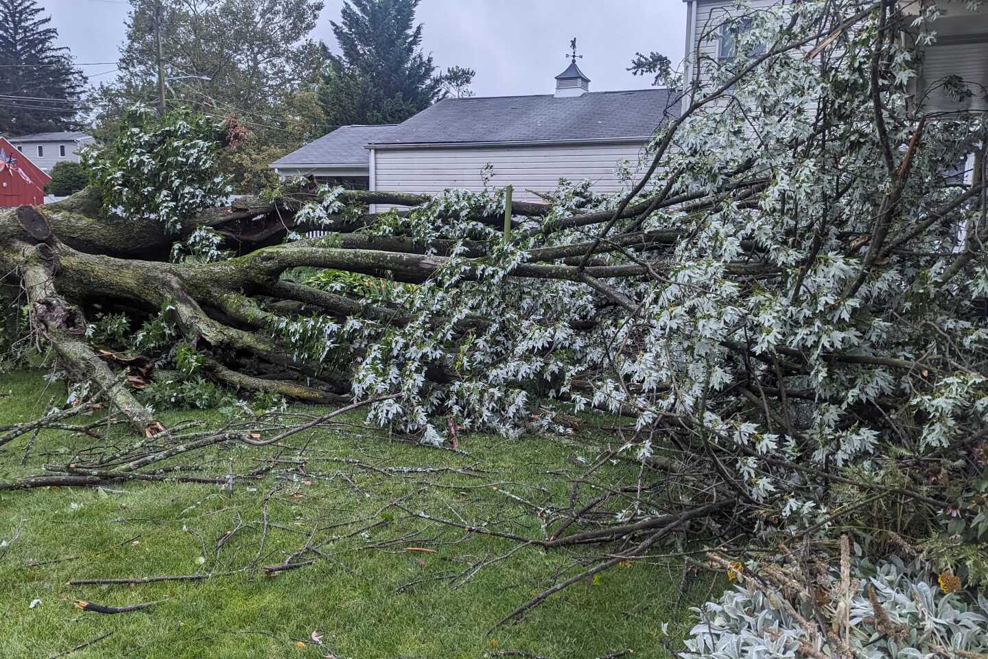 A magnolia tree shredded in a front yard in Midway Manor in east Allentown. (Stephanie Sigafoos)