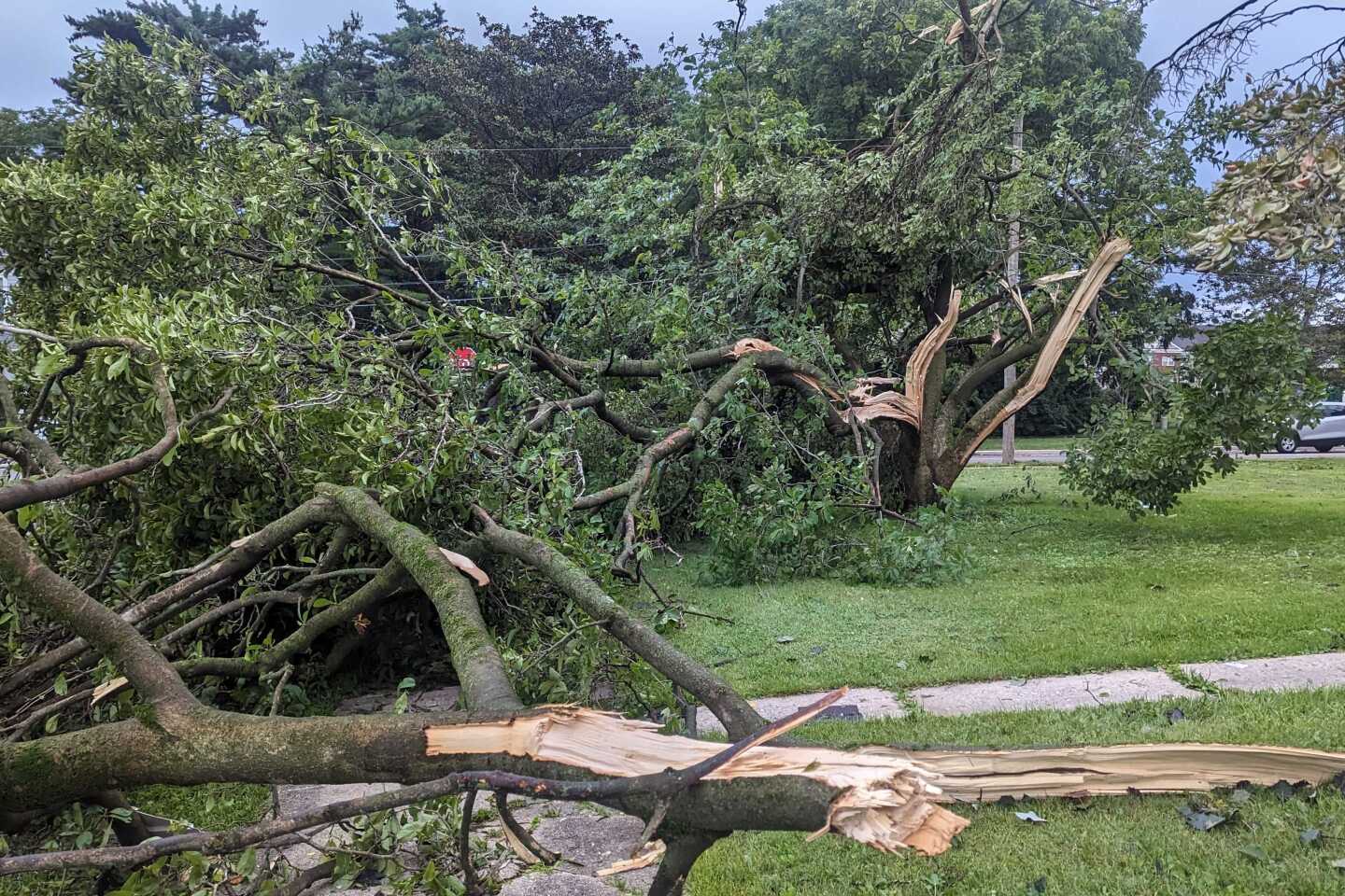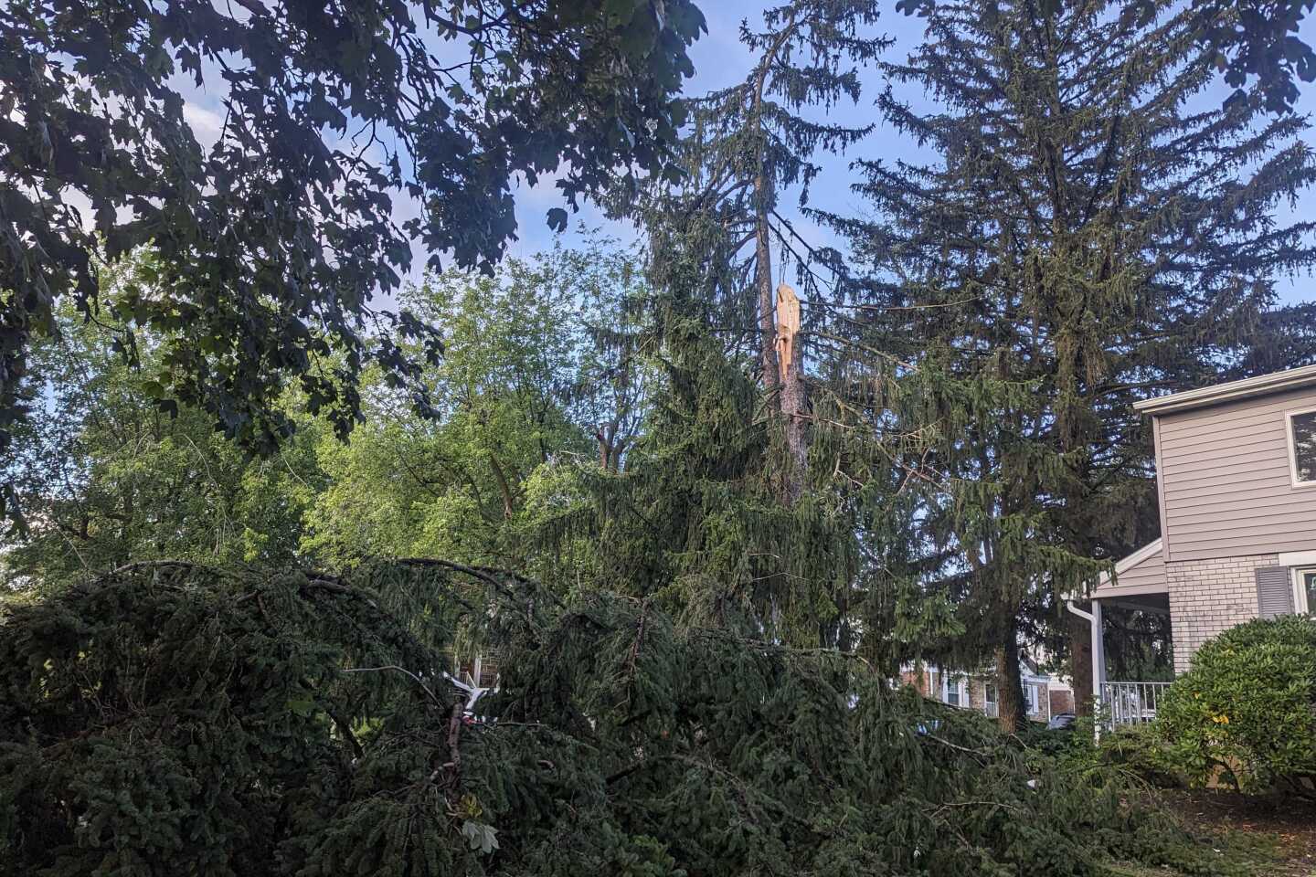 Massive tree was shredded at E. Woodlawn and Wahneta streets. (Stephanie Sigafoos)