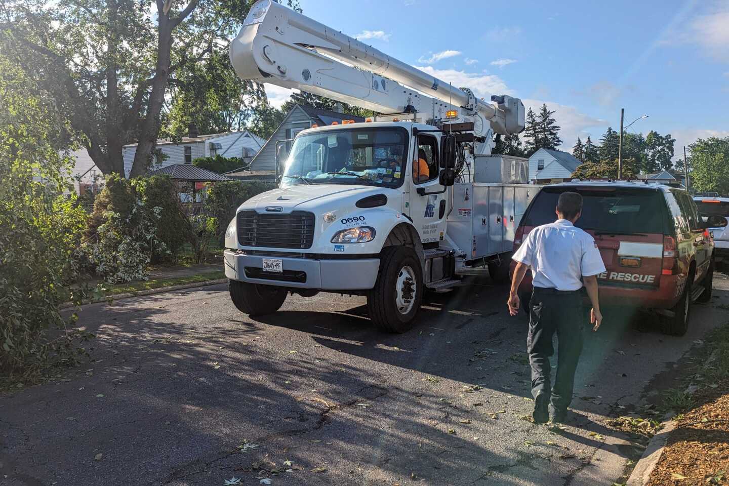 Power trucks arrive. Capt. Christopher from AFD is surveying damage. (Stephanie Sigafoos)
