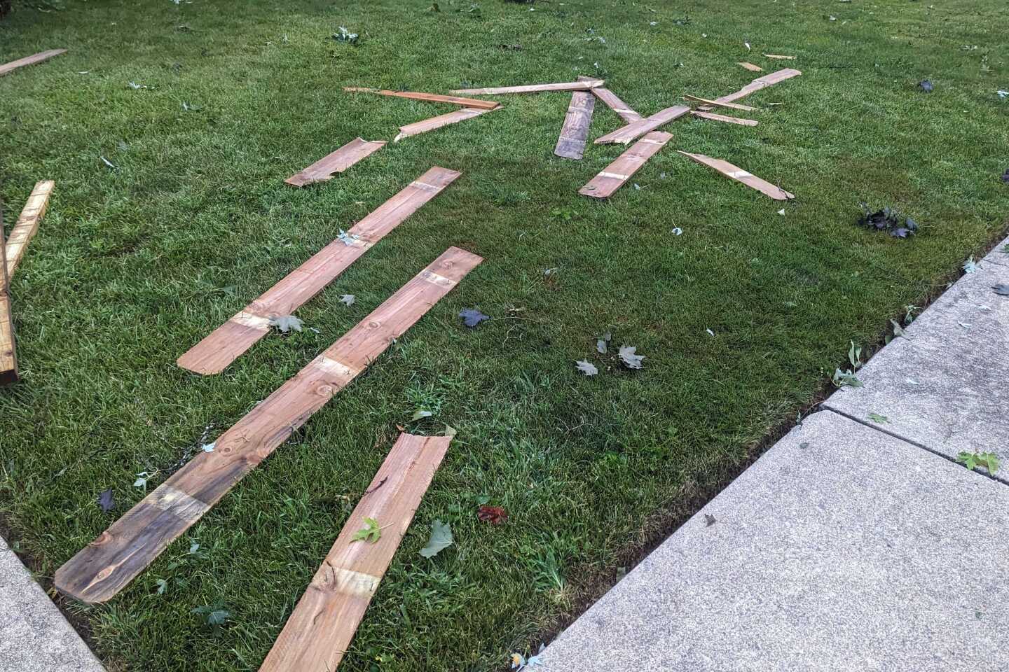 The same house damaged by the storm. The photo shows the direction the suspected tornado went. (Stephanie Sigafoos)