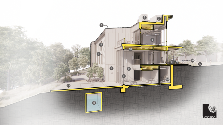 According to the college, the building mostly powers itself — using solar panels that line much of the roof. It also features high-efficiency heating and cooling systems, as well as rainwater harvesting systems for toilet flushing, and outdoor classrooms.