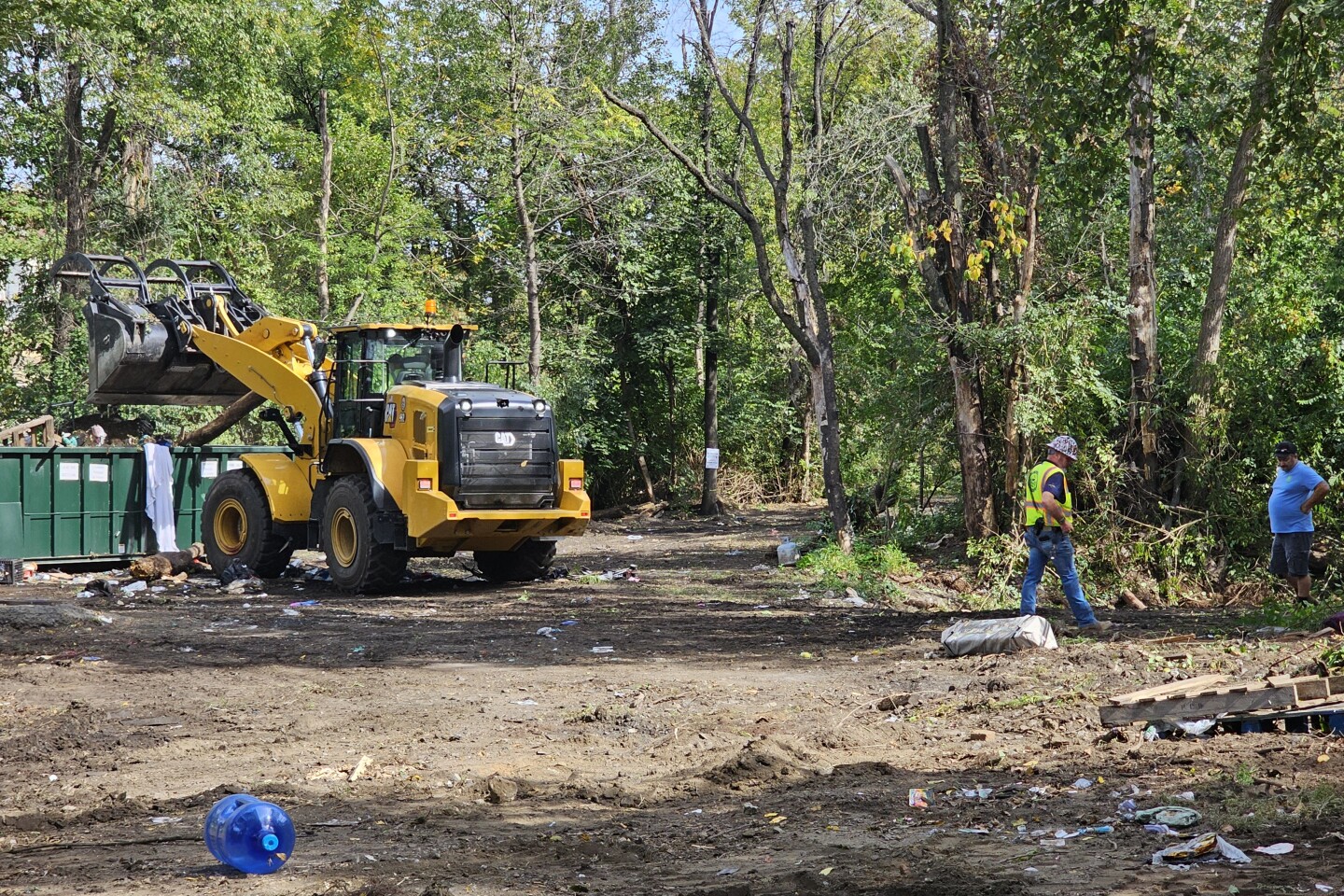 Allentown employees work Monday, Sept. 29, to clear a homeless encampment near Jordan Creek. (Jason Addy)