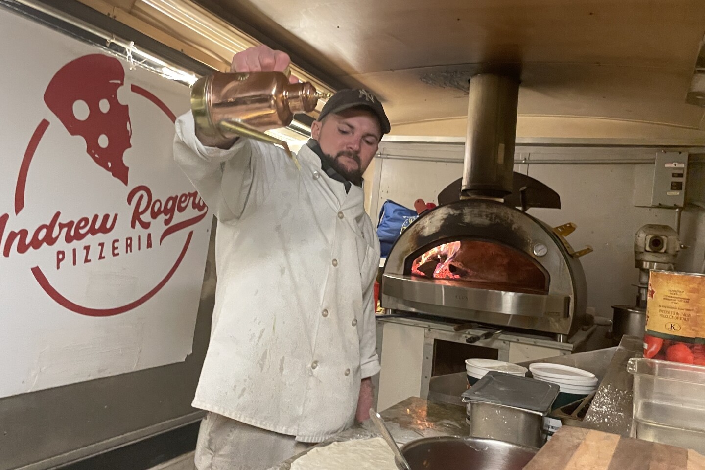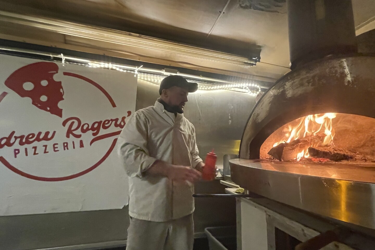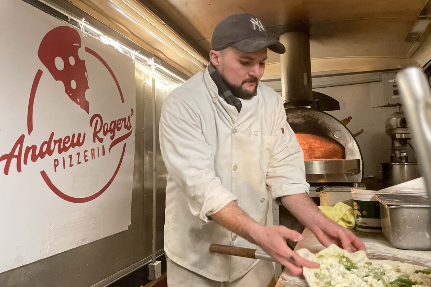 Each Friday and Saturday since November, Andrew Rogers’ Pizzeria has set up shop outside Joe’s Tavern, 12 W. Broad St., in Center City from 9 p.m. to 3 a.m. Rogers said he won’t be open Jan. 3 or 4, but plans to be back in action the following weekend with more made-from-scratch pizzas. (Courtesy)
