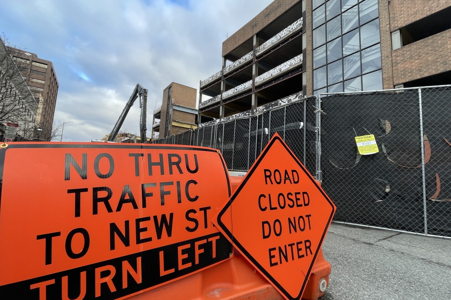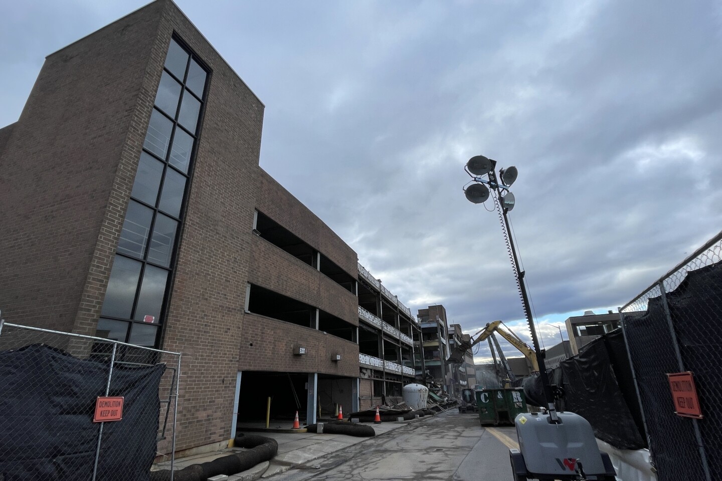 The Walnut Street Garage Demolition, as of Feb. 2, 2024. (Will Oliver)