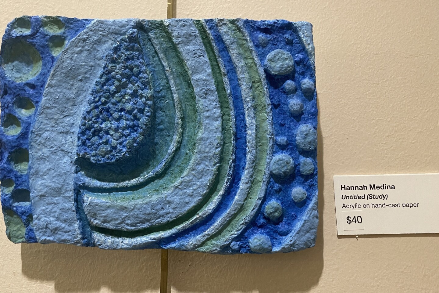 An untitled piece, featuring acrylic on hand-cast paper, from Cedar Crest student Hannah Medina. (Will Oliver)