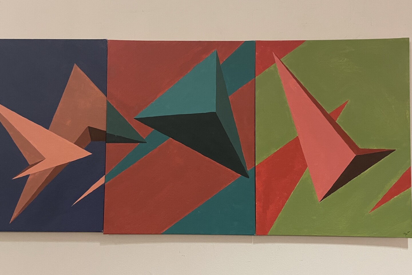 "Angry Triangles Triptych," oil on canvas board, by Cedar Crest art student Naeyli Fernandez. (Will Oliver)