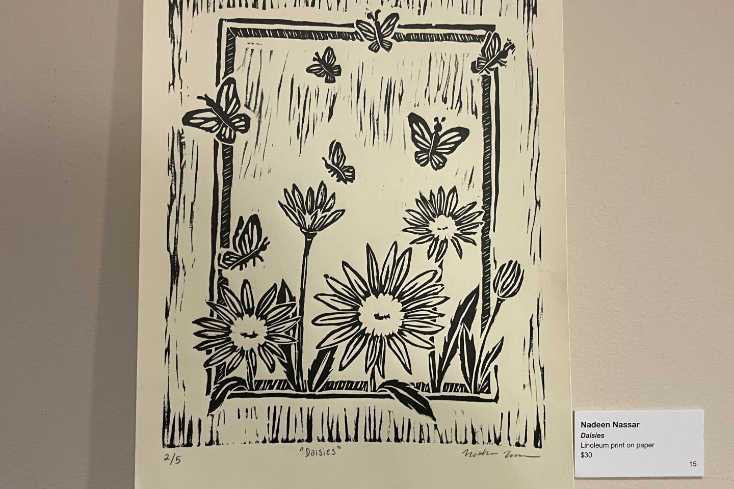 "Daisies," linoleum print on paper, by Cedar Crest art student Nadeen Nassar. (Will Oliver)