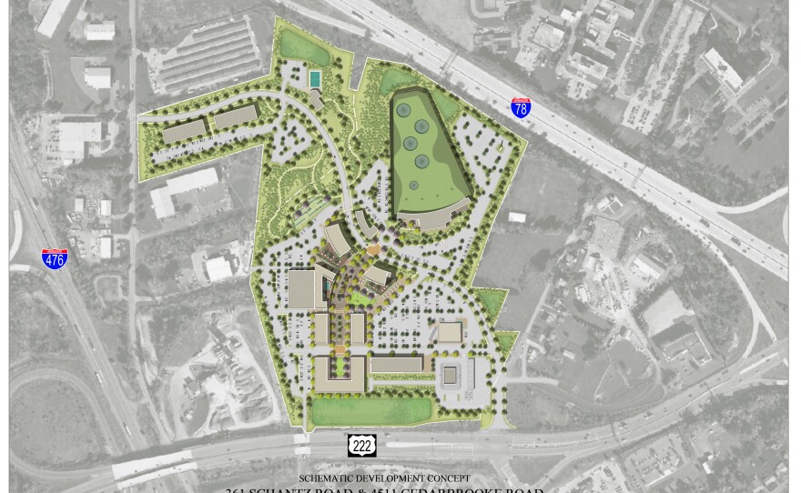 An application for conditional use would follow before various other steps of approval, such as for land development plans. The development is pegged for nearly 59 acres at Schantz and Cedarbrook roads, on former Eastern Industries property.