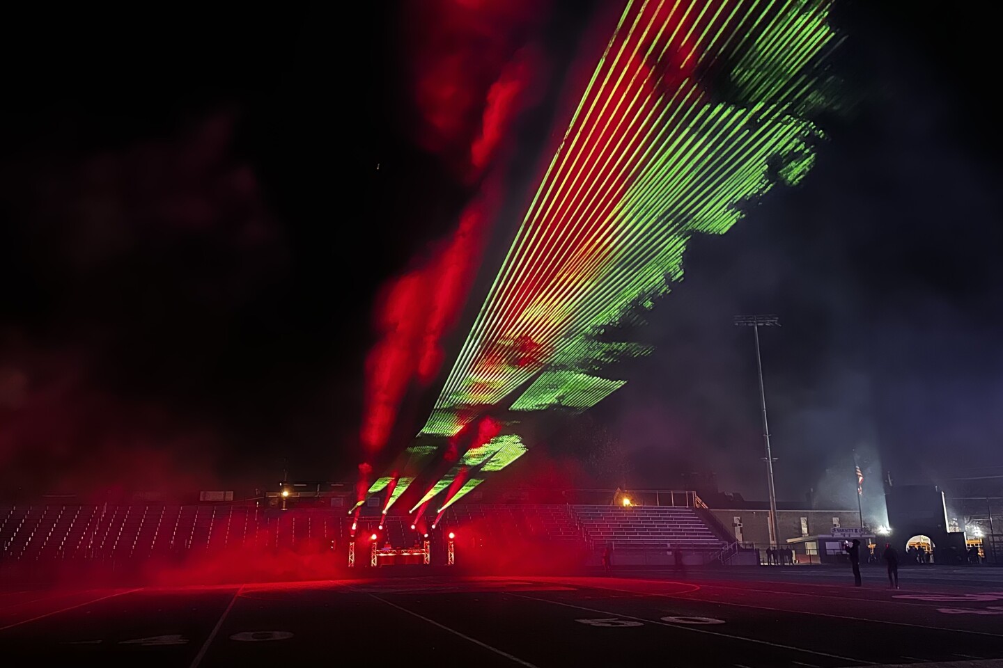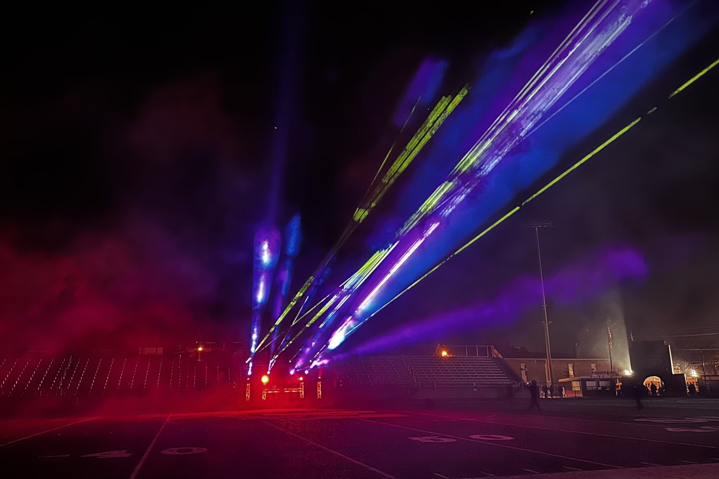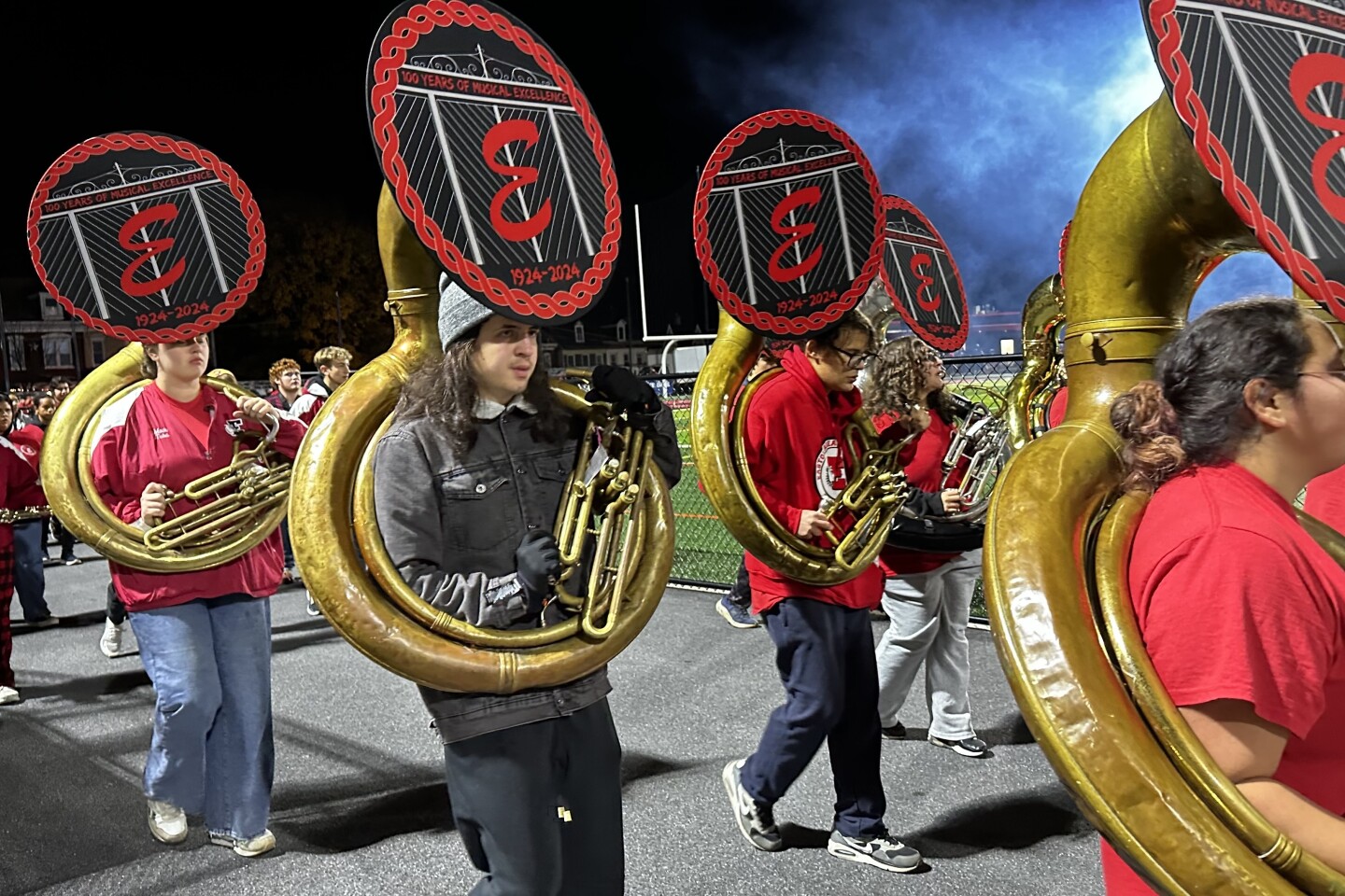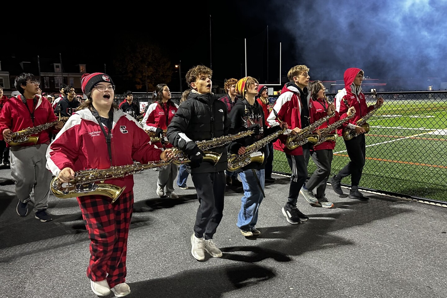Easton Area School District may not have been able to host their traditional bonfire, but a spirited pep rally drew hundreds to Cottingham Stadium on Wednesday night in anticipation of the Easton-Phillipsburg Thanksgiving Day football game. (Brian Myszkowski)