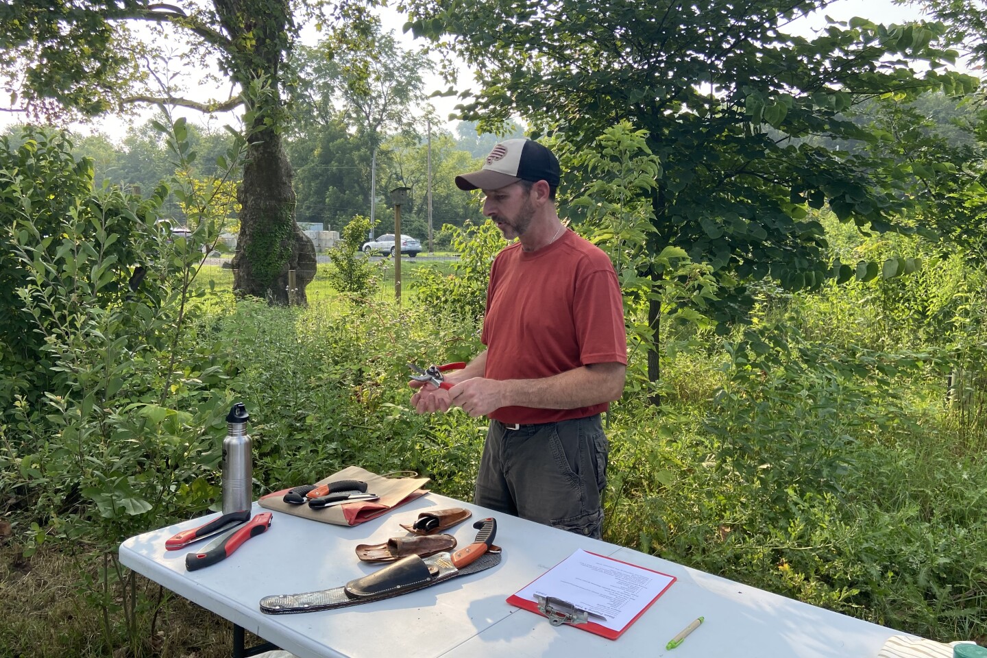 Rob Christopher, Easton's conservation manager, held a class Wednesday evening at the city's microforest about the basics of tree pruning and care. (Molly Bilinski)