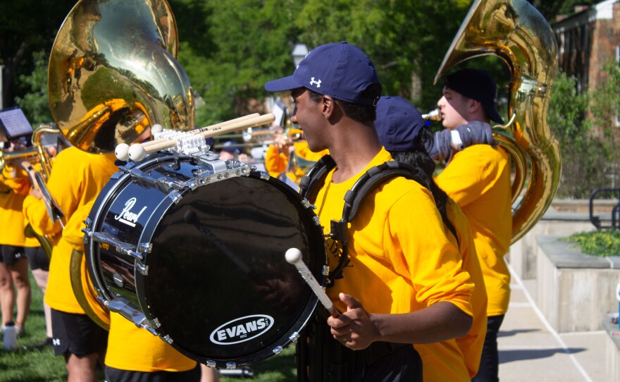 In the morning on Heritage Day, students boarded yellow school buses while the Moravian marching band played some unexpected old-school hits — such as "Black Dog" by Led Zeppelin, and "Walk This Way" by Aerosmith.