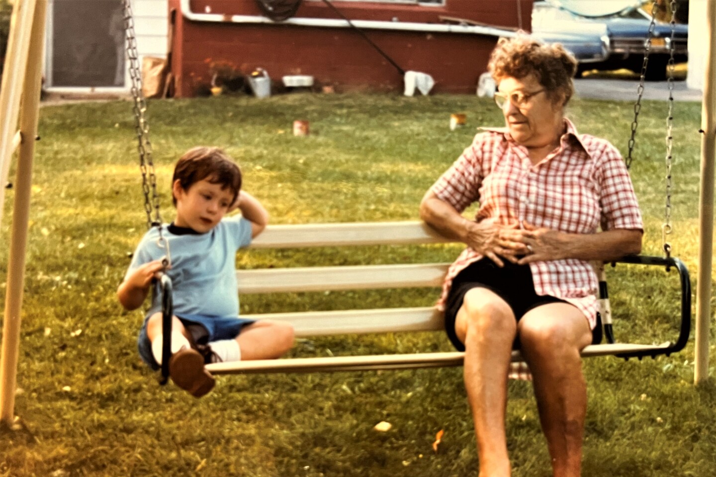 Young Brad Wlazelek and his grandmother, Gerda Fenstermaker, share a swing. (Courtesy)