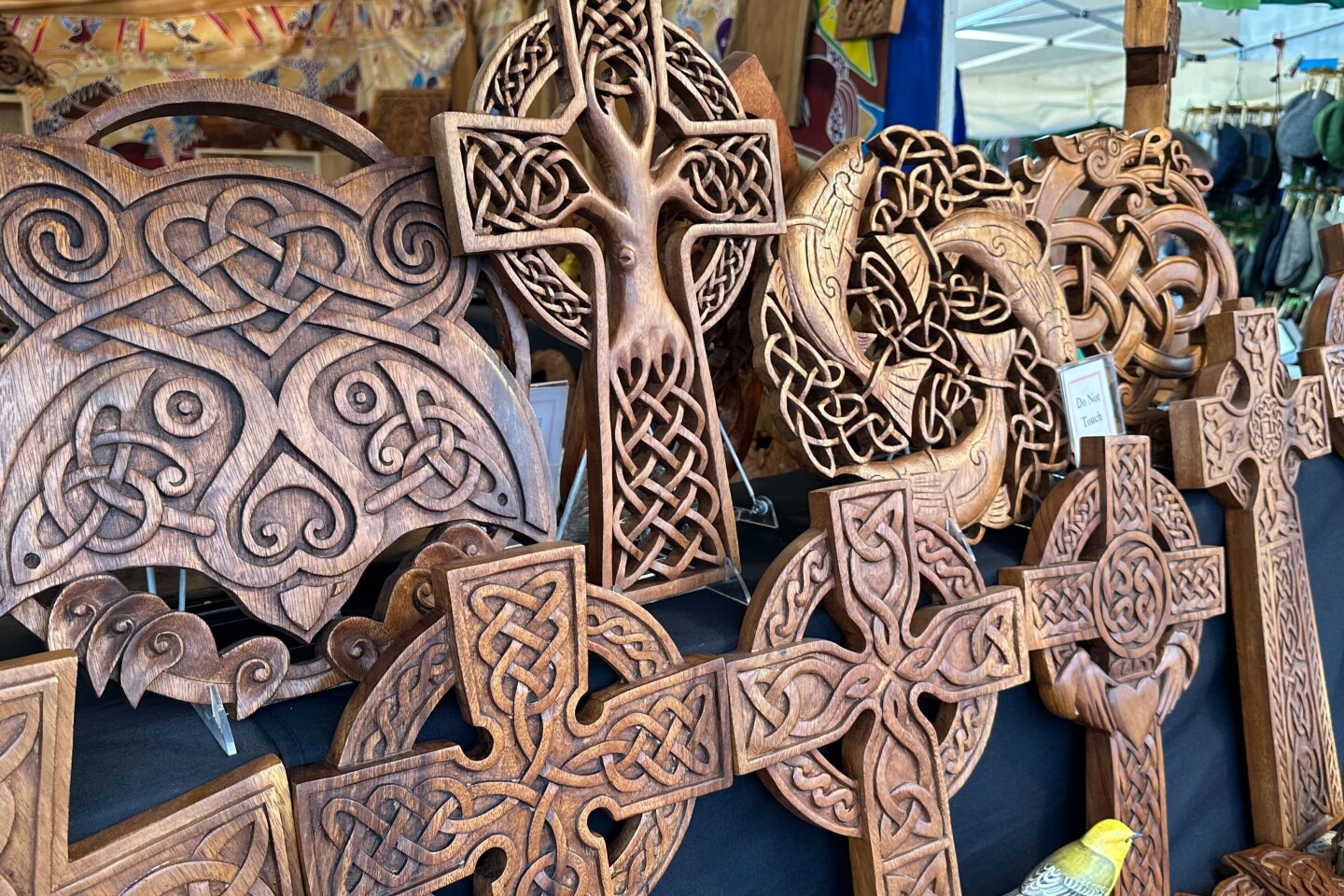 A spread of wood carving works available at Blue Frogs Company at the 37th showing of Celtic Classic in Bethlehem. (Grace Oddo)