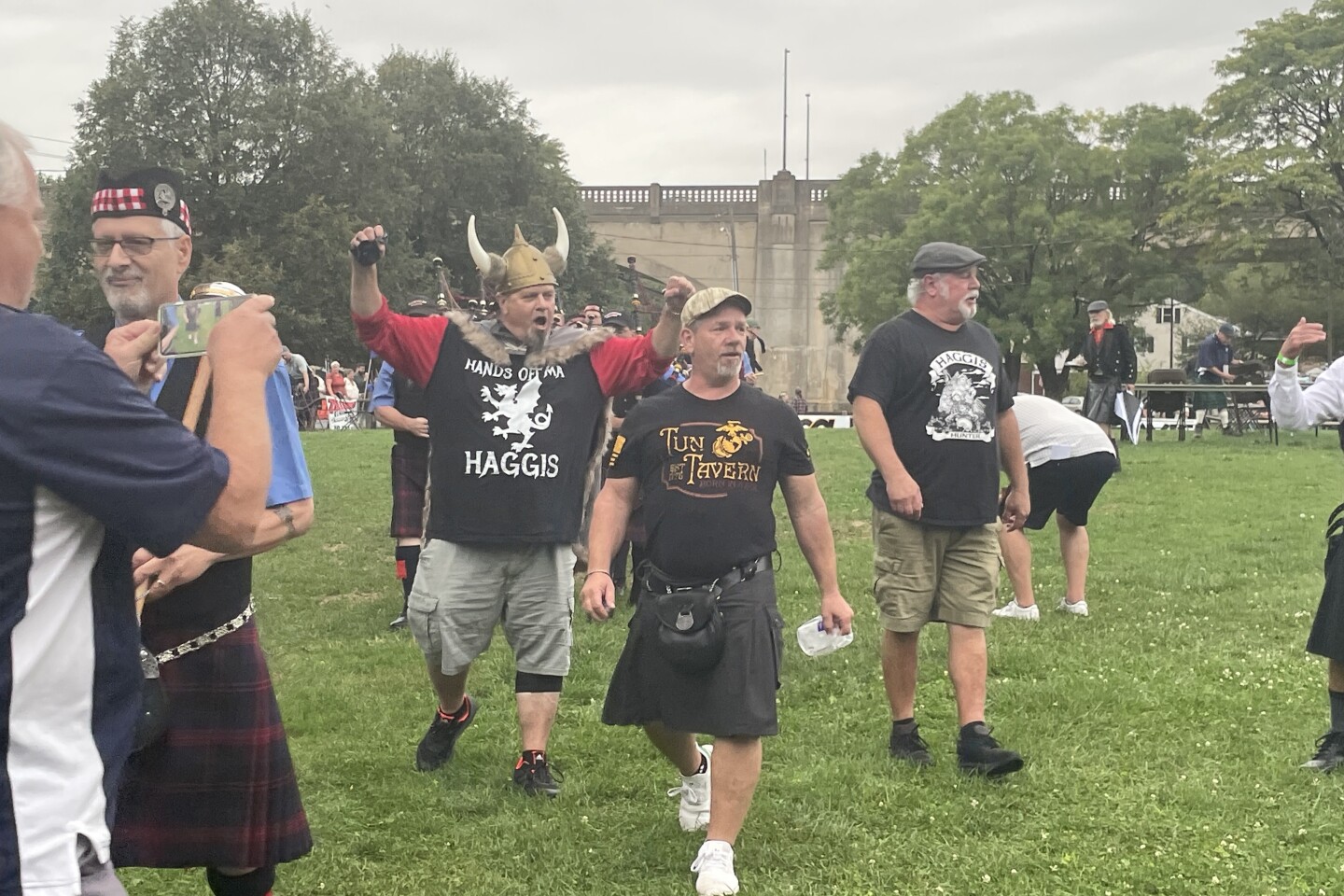 Celtic United Pipes & Drums makes their way onto Highland Field at Spring and Lehigh streets, kicking off the 2024 Celtic Classic Haggis Bowl. (Will Oliver)