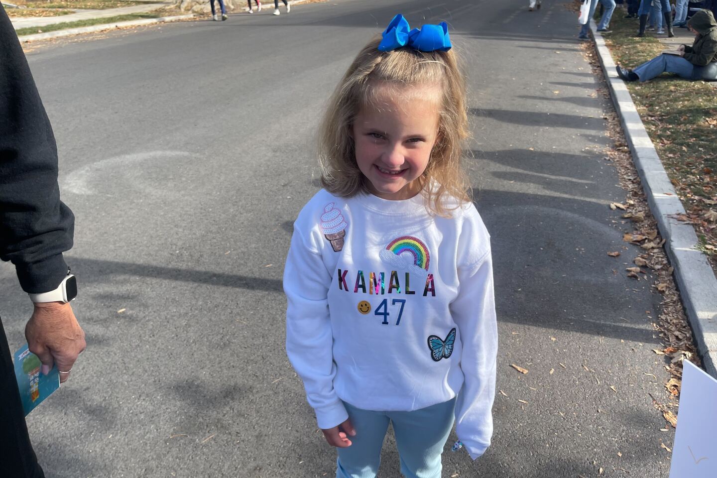 Londyn Pierson, 5, attends the Kamala Harris rally at Muhlenberg College in Allentown on Monday, Nov. 4, 2024. (Micaela Hood)