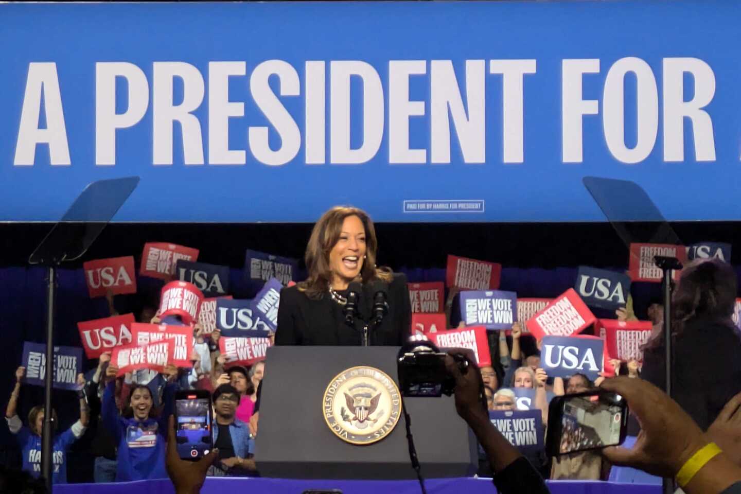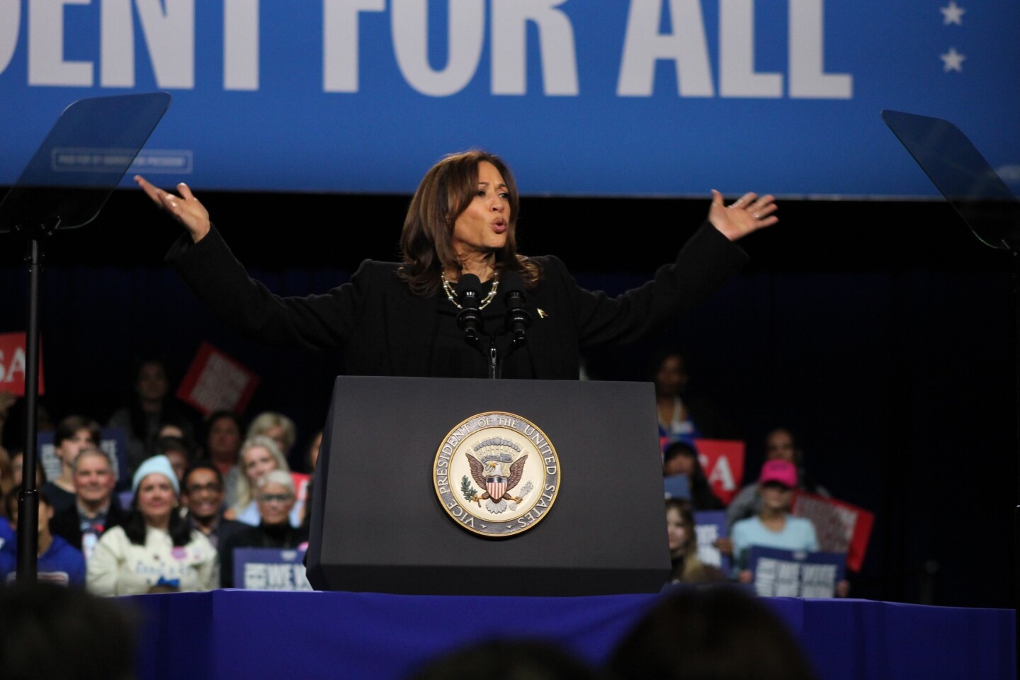 Vice President Kamala Harris speaks at a campaign rally in Allentown at Muhlenberg College just before Election Day. (Tom Shortell)