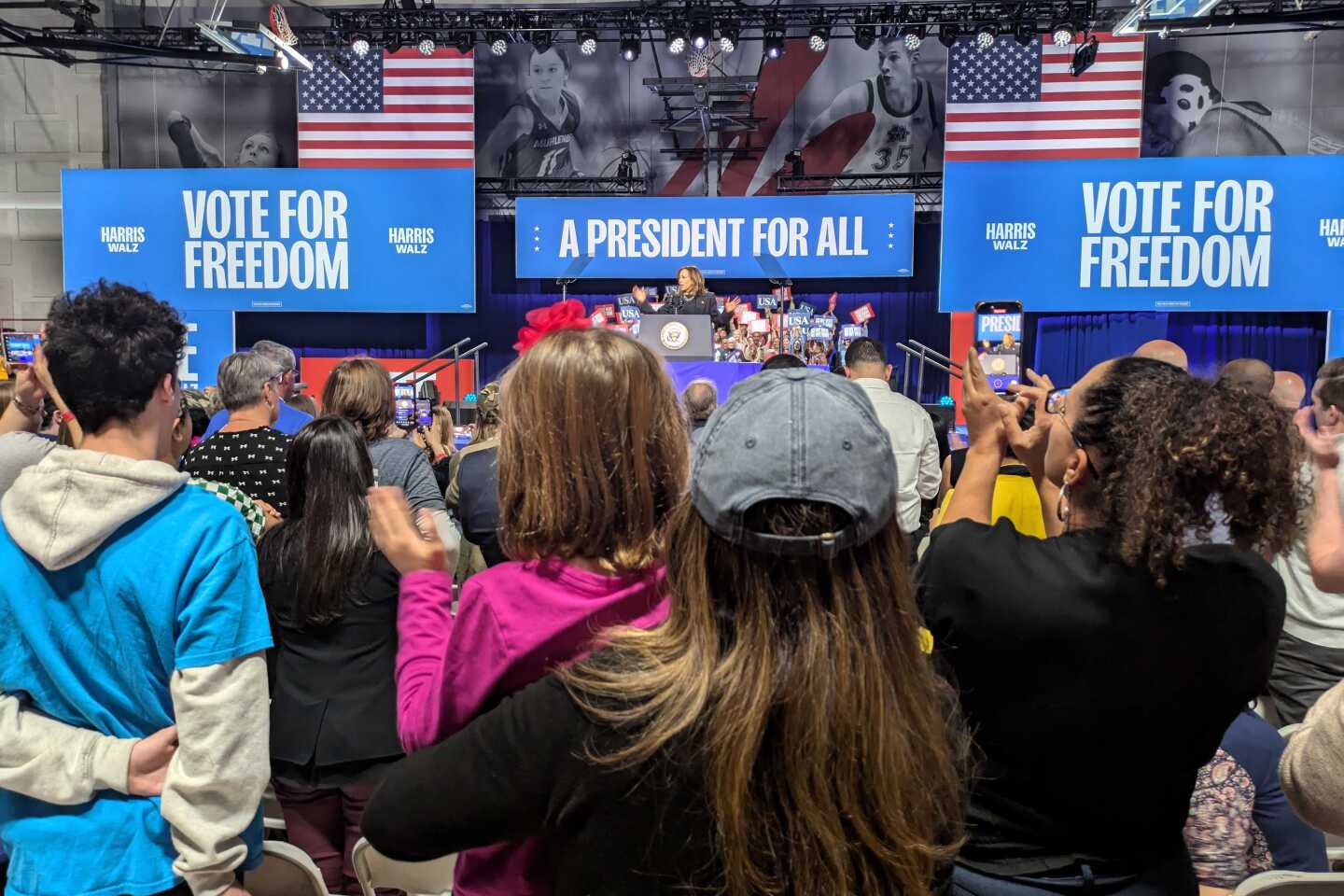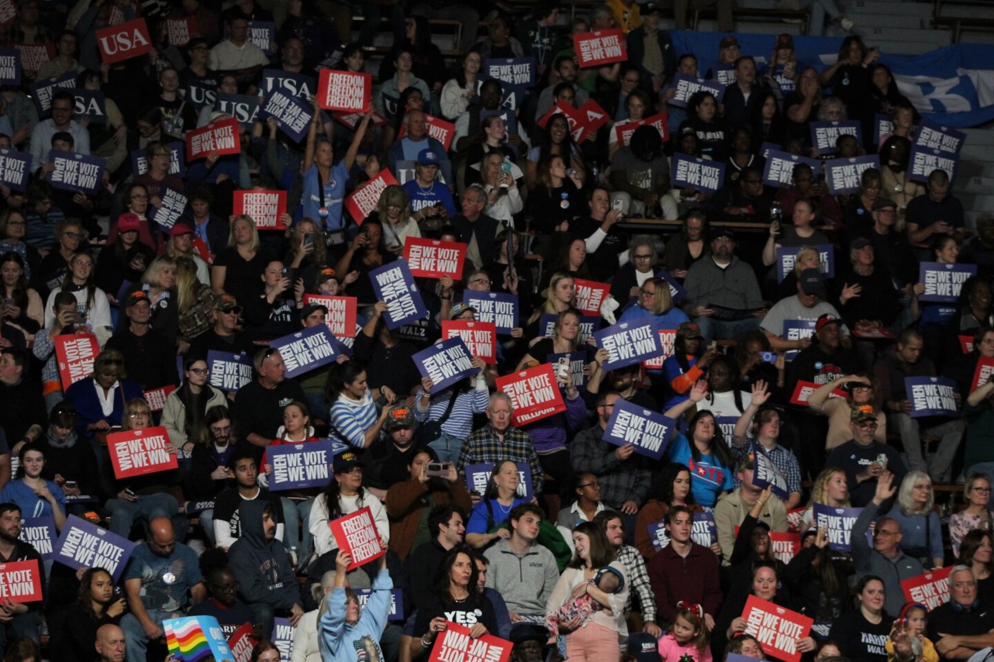 A view from the audience at Vice President Kamala Harris' campaign rally at Muhlenberg College in Allentown. (Tom Shortell)