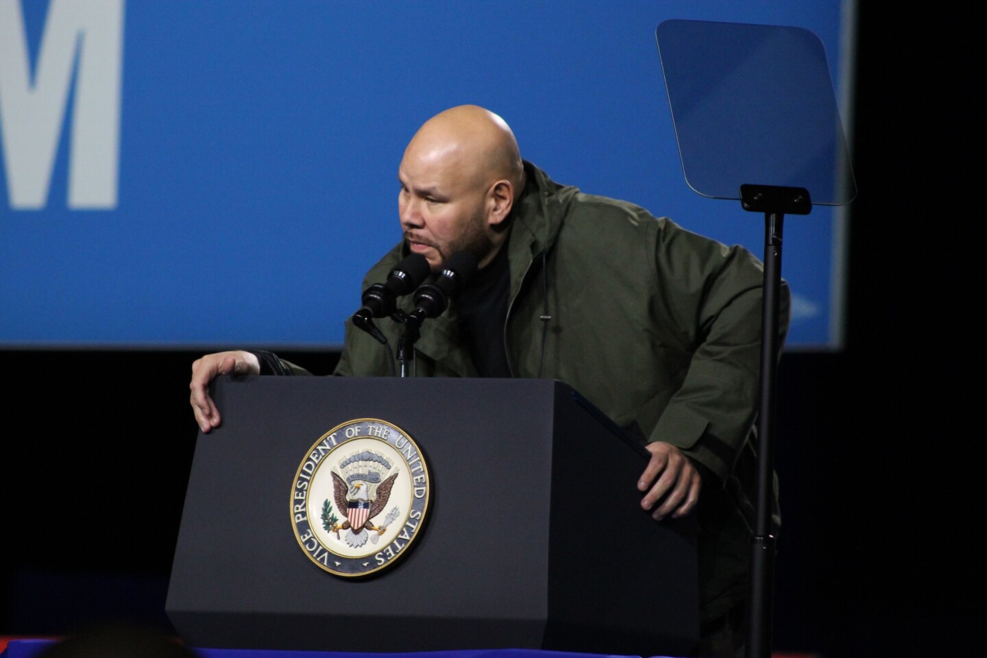 Rapper Joseph "Fat Joe" Cartagena takes the stage inside Muhlenberg College's Memorial Hall. (Stephanie Kasulka)