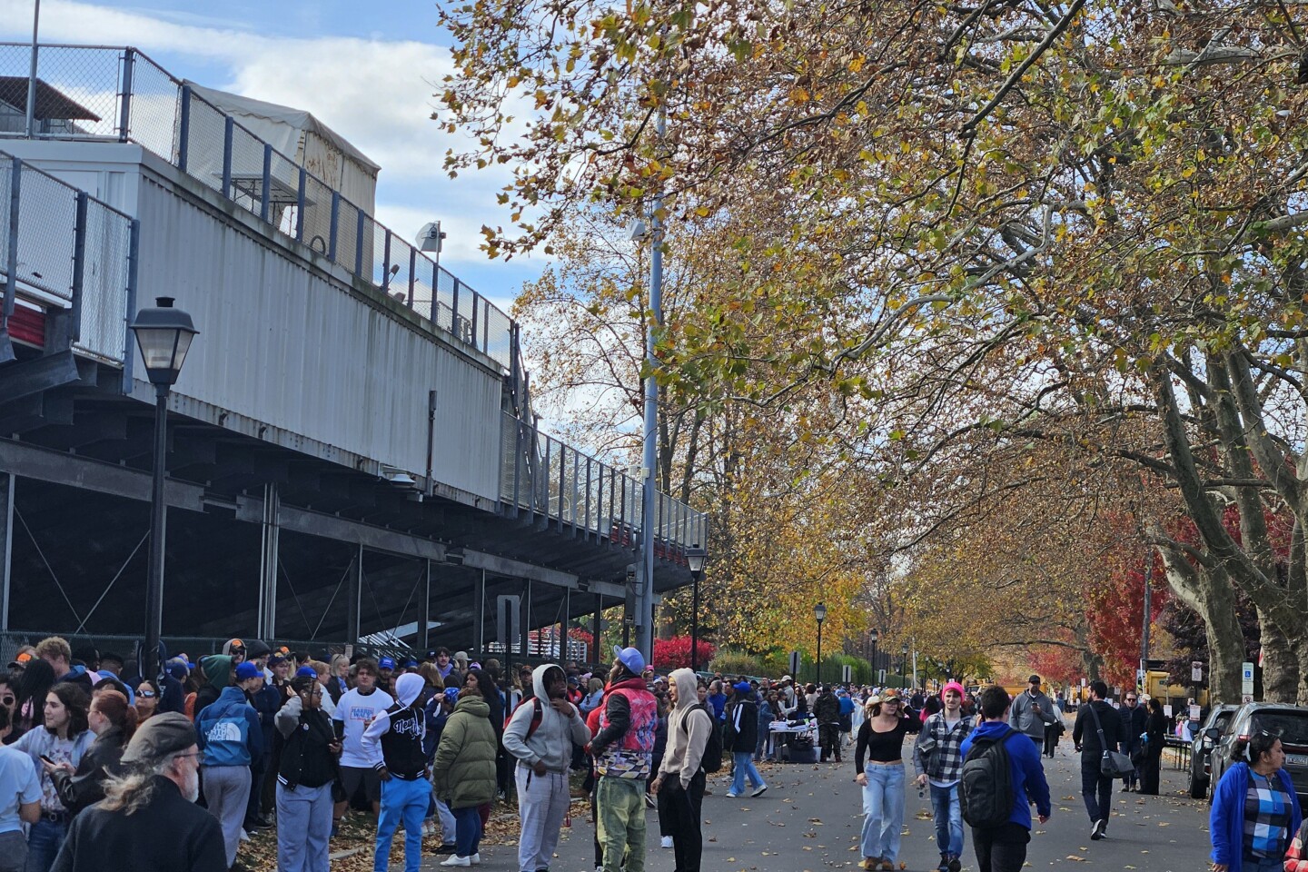 The line at Muhlenberg College for the rally for Vice President Kamala Harris on Monday, Nov. 4, 2024. (Javier Diaz)