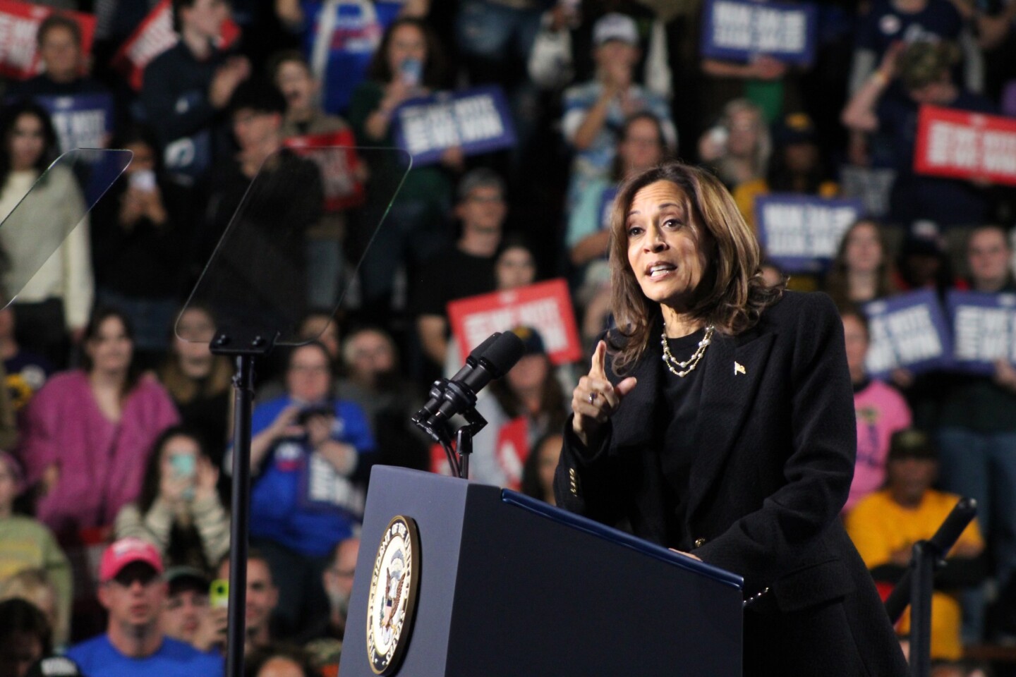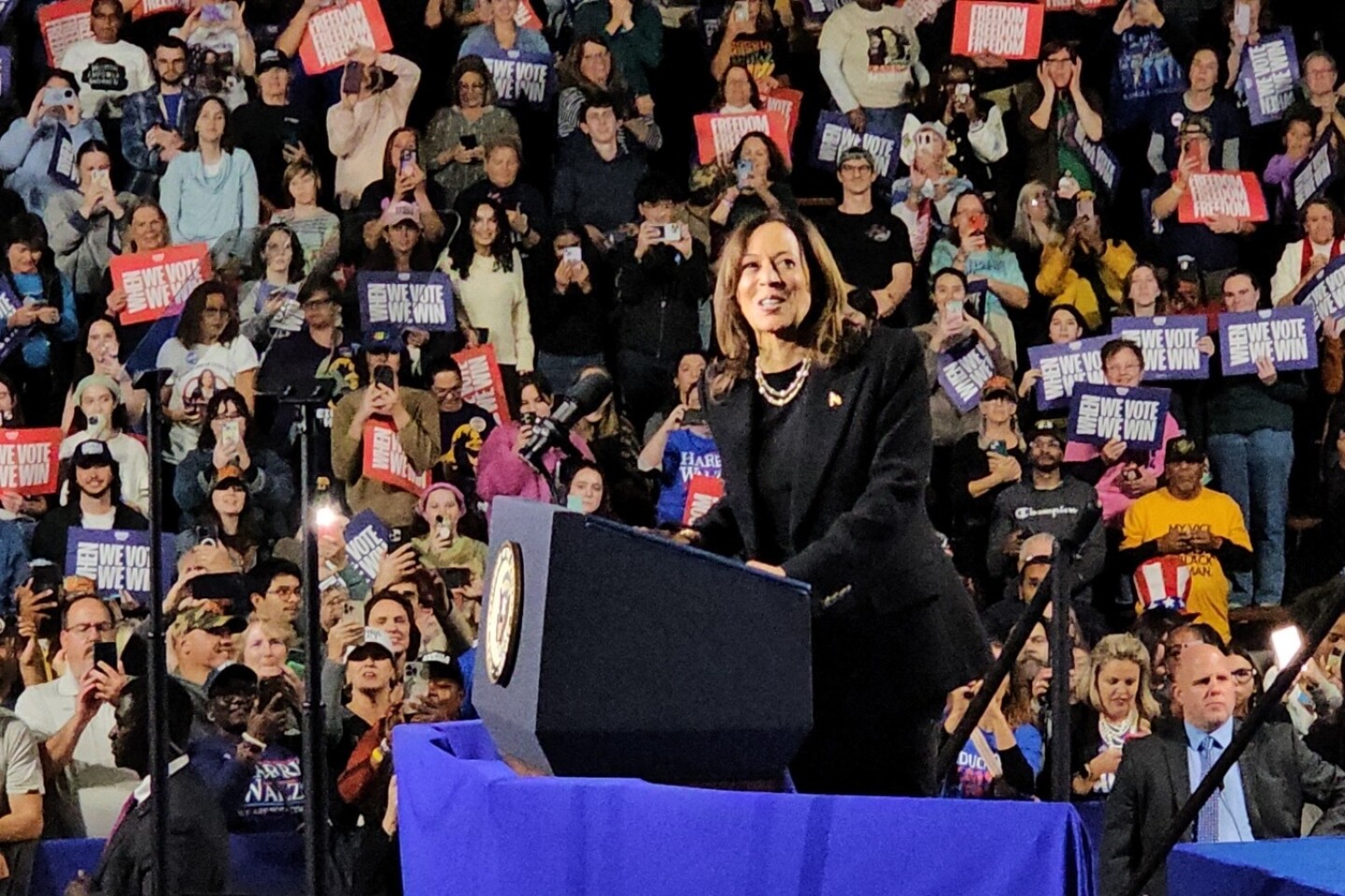 Vice President Kamala Harris speaks at a campaign rally at Muhlenberg College in Allentown just before Election Day. (Jason Addy)