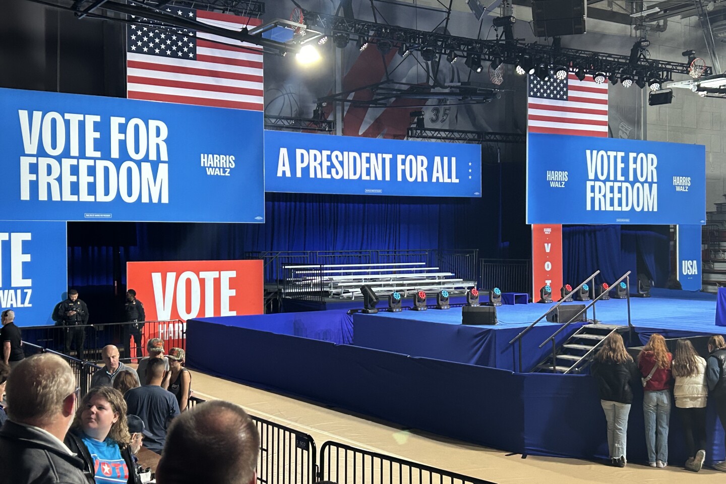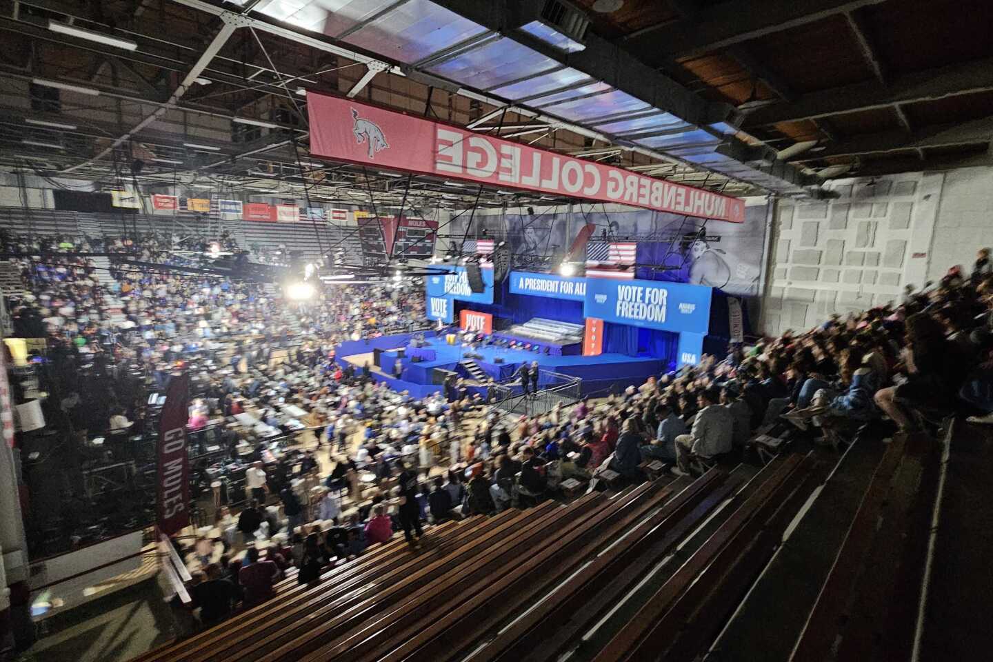 A first glance inside Muhlenberg College's Memorial Hall, where Democratic nominee Kamala Harris is slated to speak later Monday. (Jeffery Oddo)