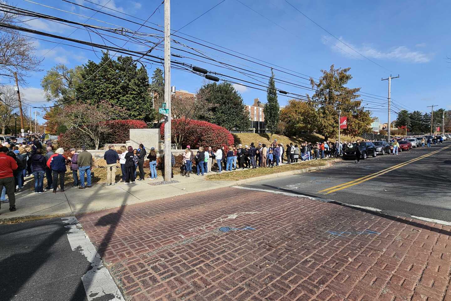 Kamala Harris supporters line up for her rally at Muhlenberg College on Monday, Nov. 4, 2024. (Micaela Hood)