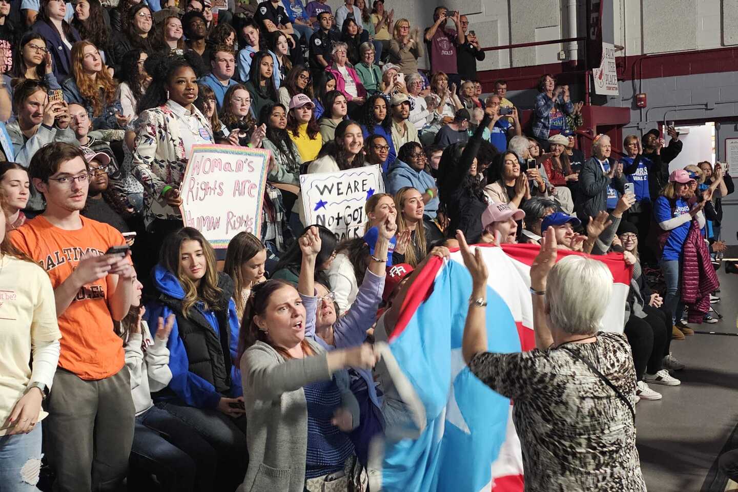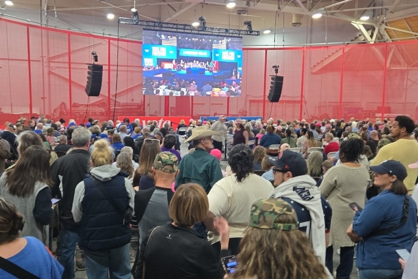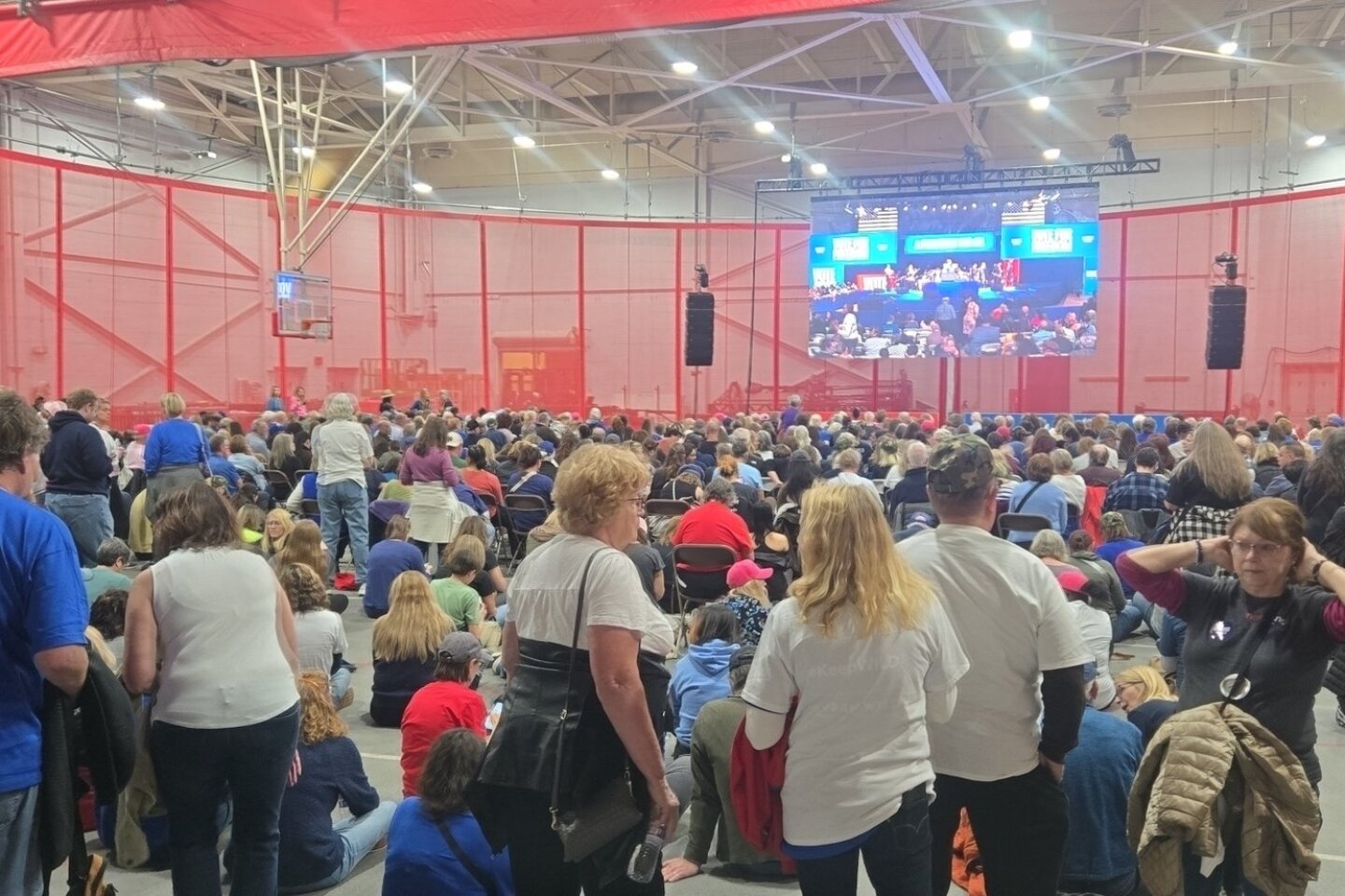 Supporters of Kamala Harris in an overflow room prior to her speech on the campus of Muhlenberg College in Allentown, Pa. on Nov. 4, 2024. (Courtesy)