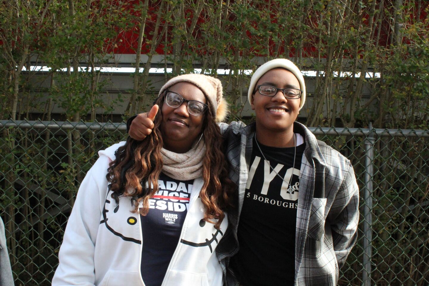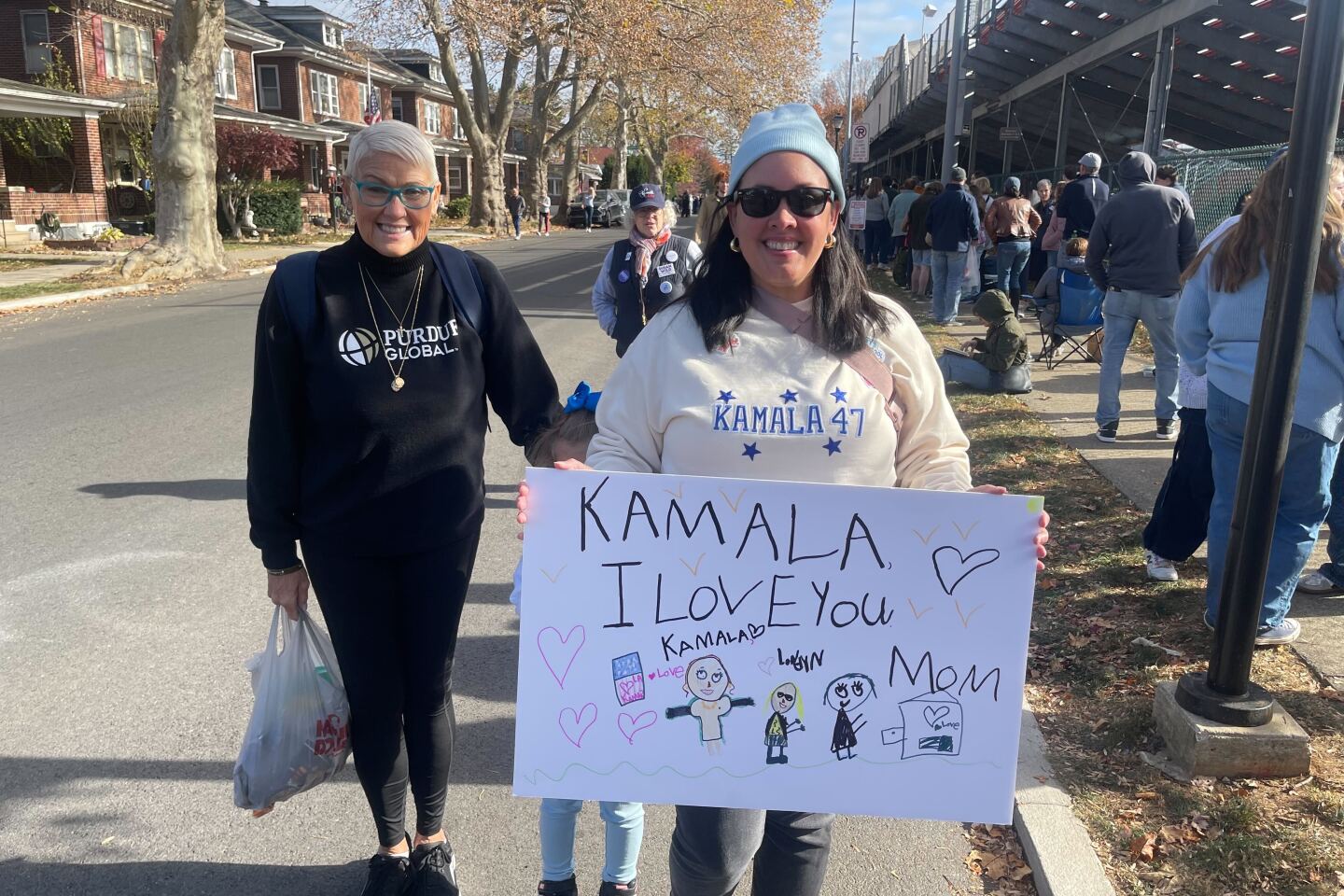 Shonta Ford and Cerise Whitlock wait in line at the Kamala Harris rally at Muhlenberg College on Monday, Nov. 4, 2024. (Stephanie Kasulka)