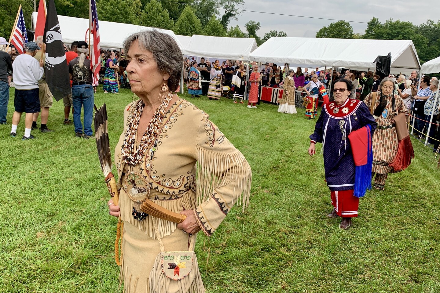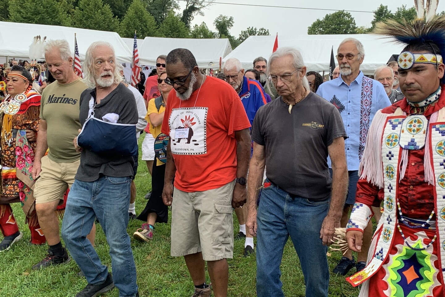 Veterans are honored during the Grand Entry at the Roasting Ears of Corn Festival. (Olivia Marble)