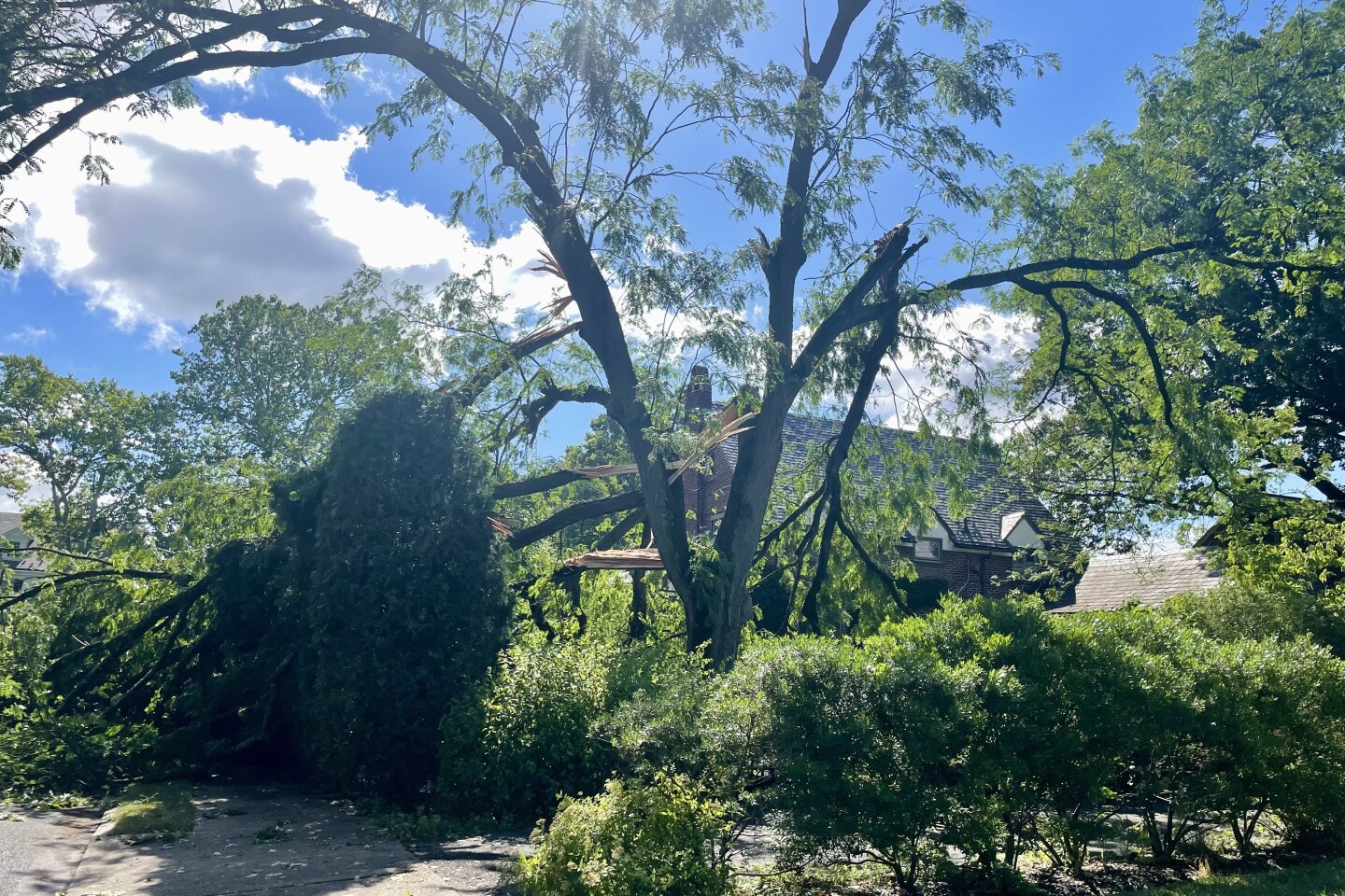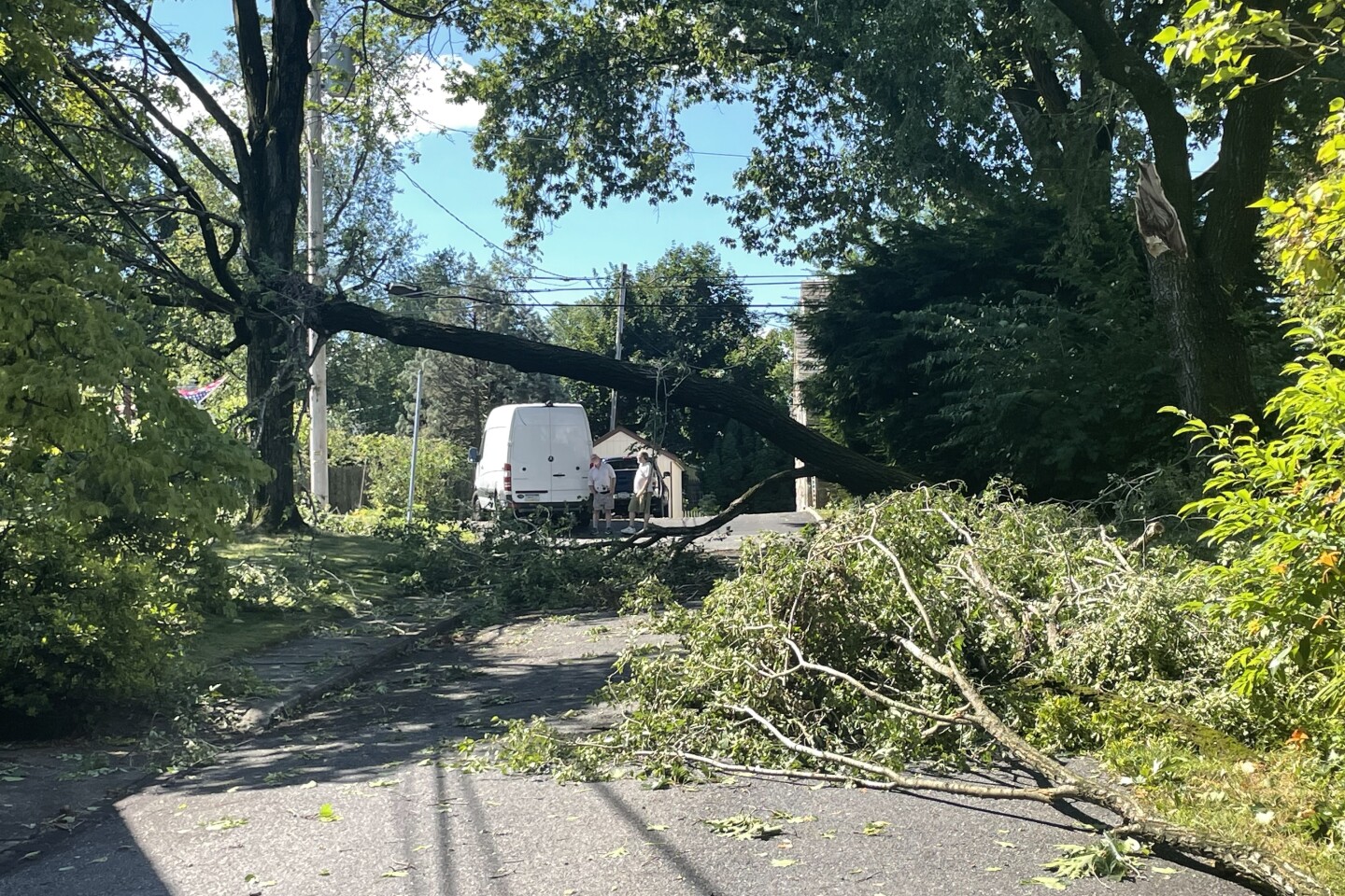 Parts of a tree lay on Westwood Rd off of Eaton Ave in Bethlehem. (Christine Sexton)