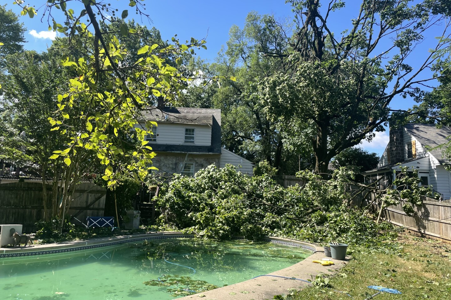 Trees litter a backyard and a pool area at a home in the west end of Bethlehem. (Christine Sexton)
