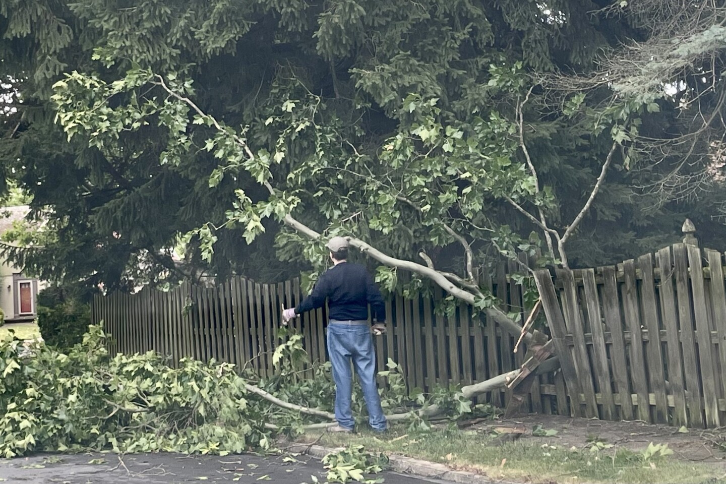 A homeowner on Homestead Ave in Bethlehem cleans up after Wednesday's storm. (Christine Sexton)