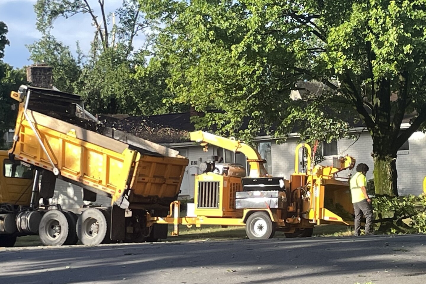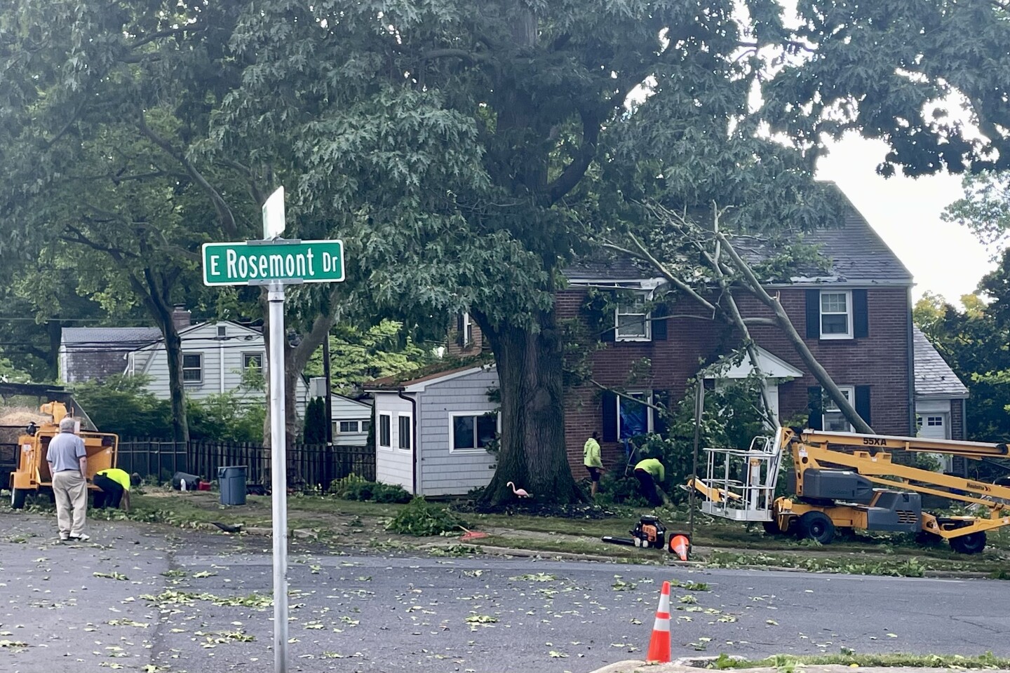 City workers along W. Union Blvd. in west Bethlehem begin the long process of cleaning up after Wednesday night’s powerful storm. (Christine Sexton)