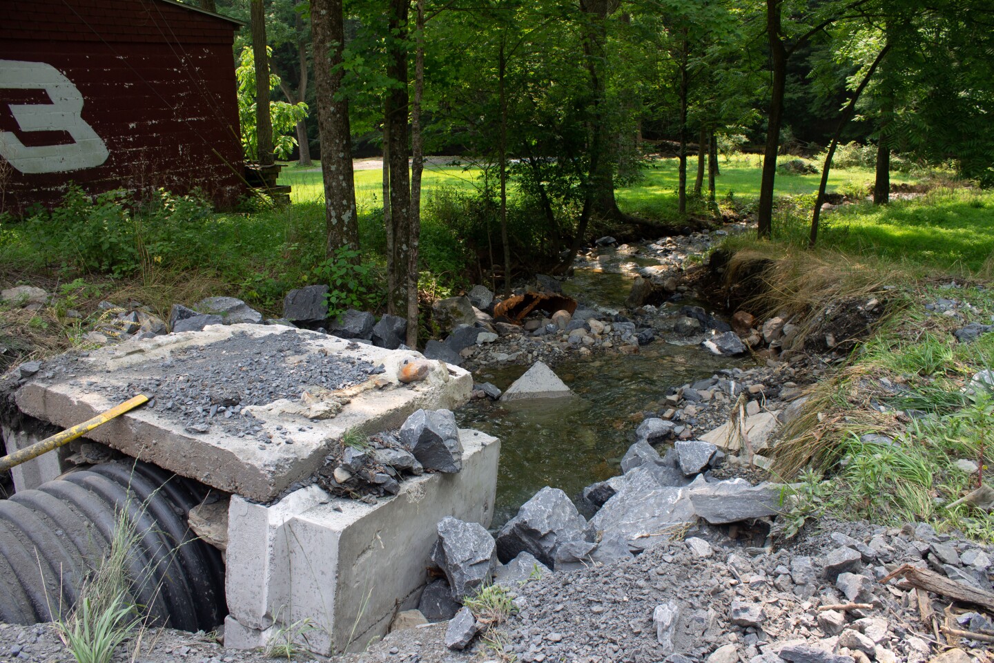 This pipe was once covered with rocks and land, but floods washed it away, leaving it bare. (Julian Abraham)