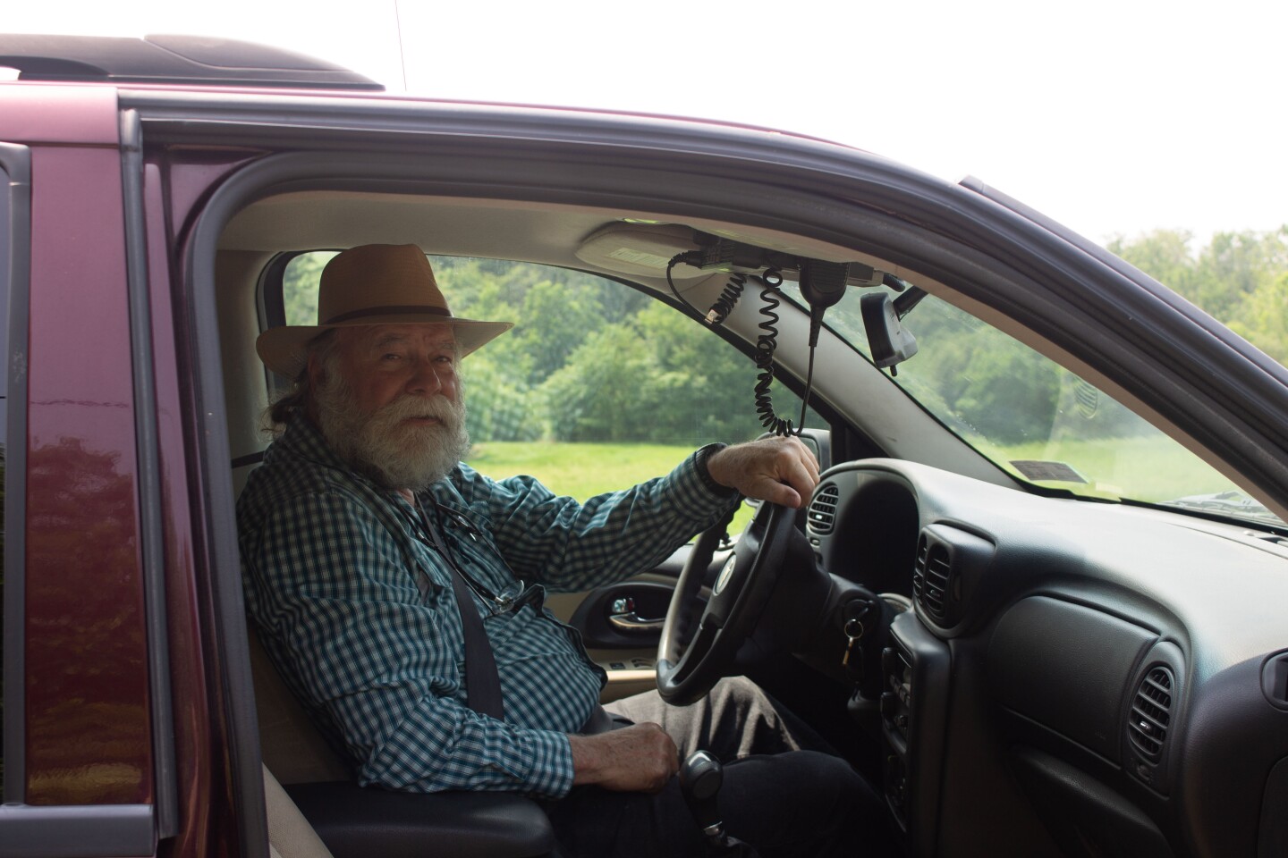 Upper Mt. Bethel Twp. Manager Ed Nelson drives his work vehicle, scouting out damage from the flooding. (Julian Abraham)