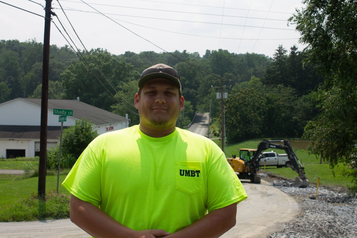 Twenty-two year-old Nick Nittoli stands in front of his work crew. He explained that their job today is essentially to dig out trenches and fill them up with stone to minimize future flooding. (Julian Abraham)