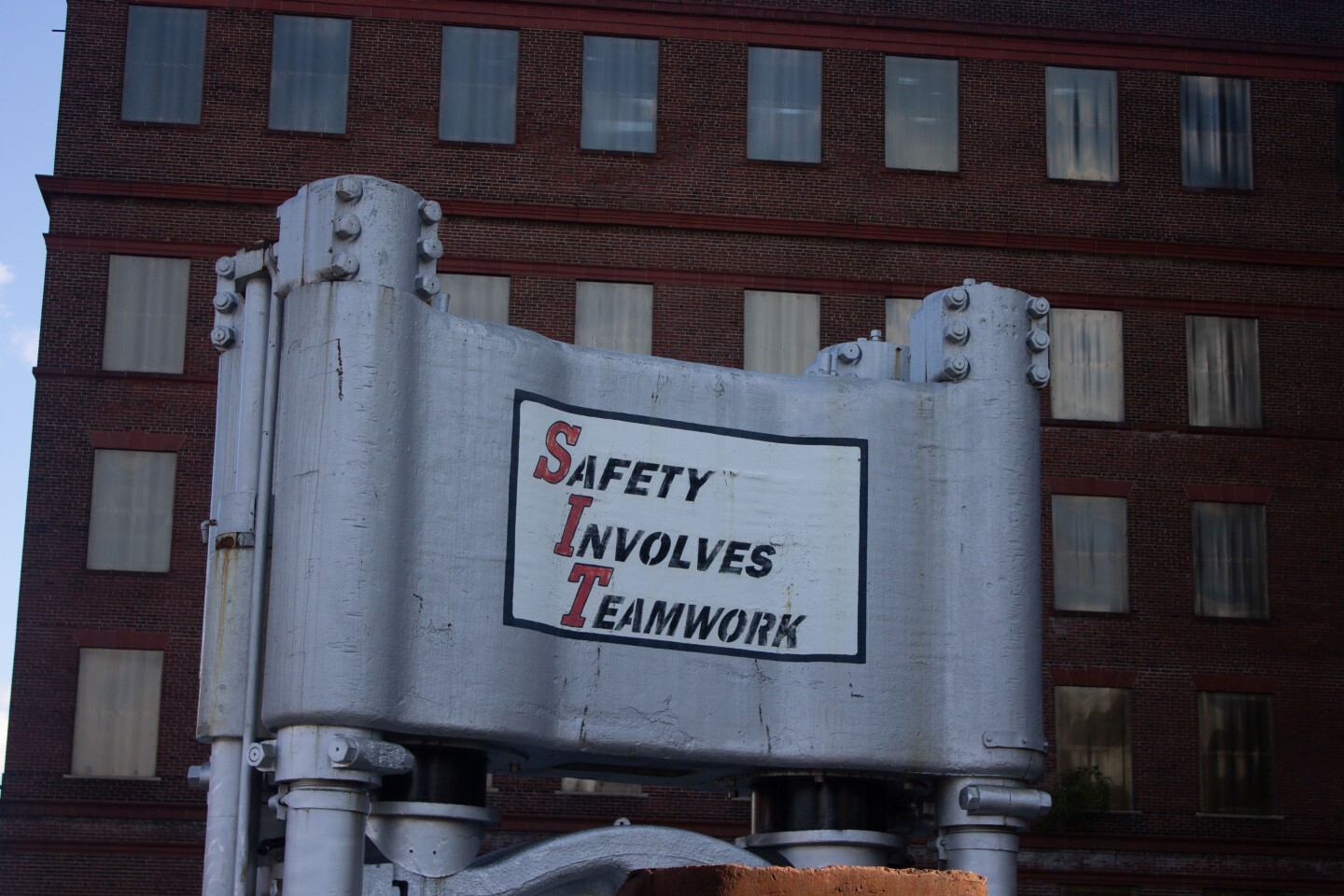 A sign that used to be for workers of Bethlehem Steel, still stands today at the National Museum of Industrial History. (Julian Abraham)